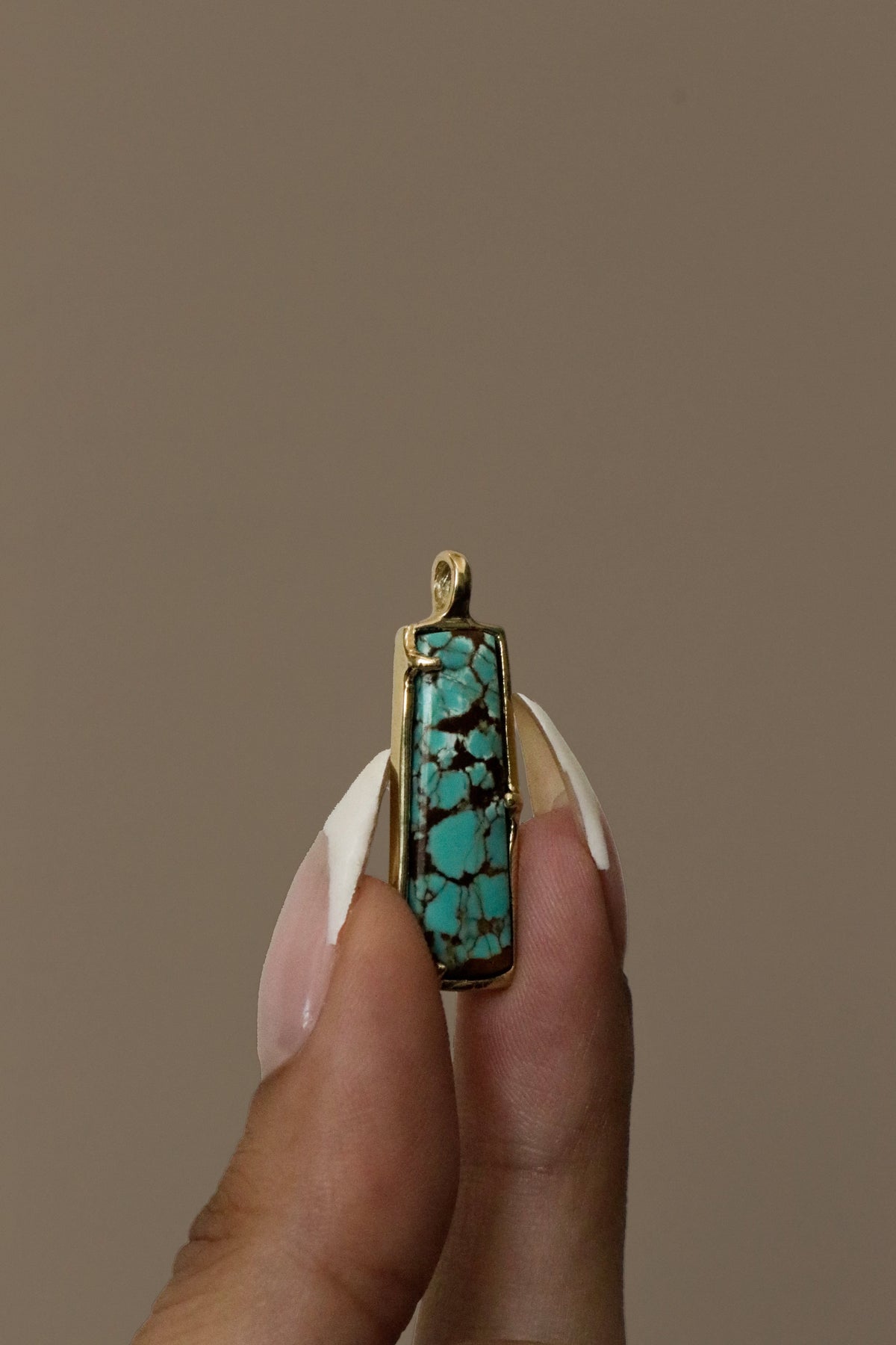 Earthy yet refined, this Turquoise Cabochon Pendant Necklace features a smooth turquoise cabochon set in solid 14k yellow gold. Each pendant is hand-carved in wax and cast in gold, giving every piece its own organic character and making it truly one of a kind. Suspended from a 20" foxtail chain, the elongated silhouette adds effortless elegance and a grounded, timeless feel—perfect for everyday wear or layering.