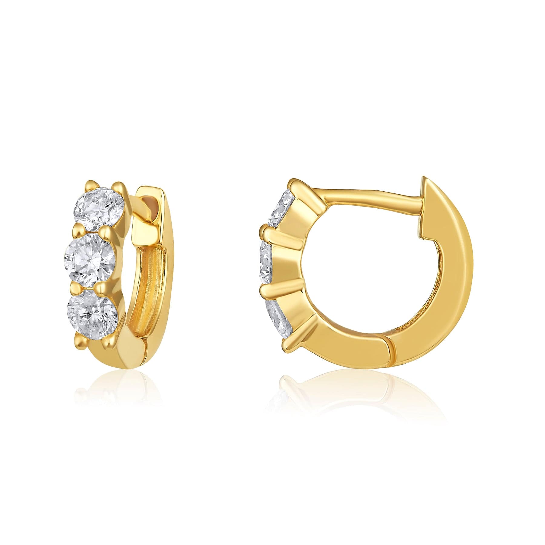 Chunky Three Diamond Yellow Gold Huggie Earrings