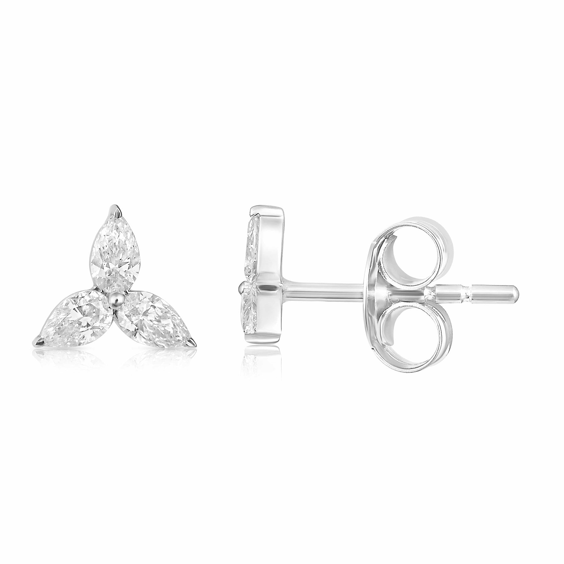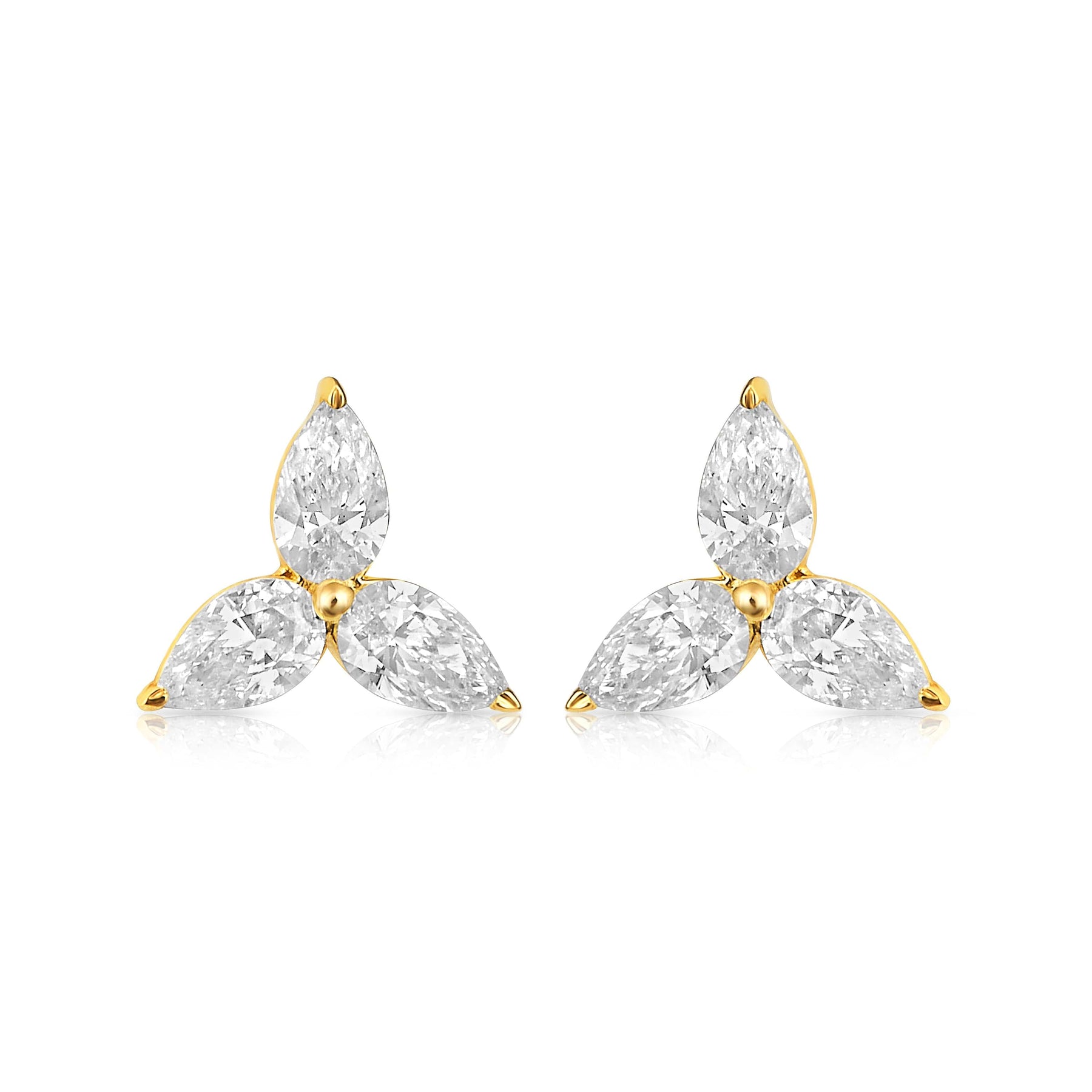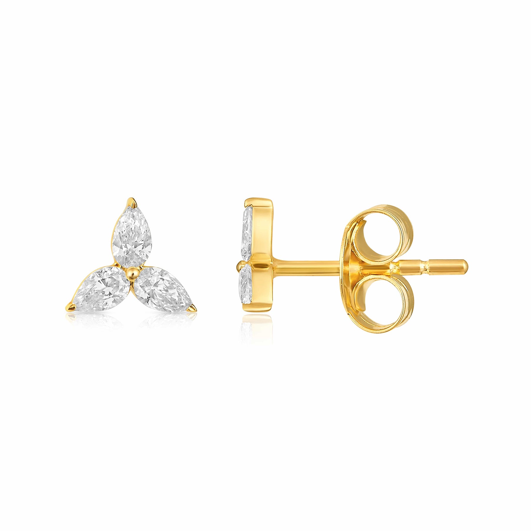 Sculptural and luminous, these marquise trio studs form a refined cluster that sits close to the lobe. Crafted in warm 14K yellow gold, they’re petite, polished, and effortlessly elegant.