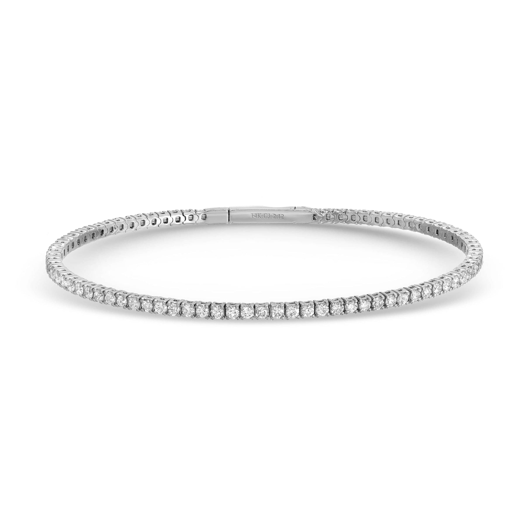 - Design: 2mm wide prong set diamond flexible tennis bangle