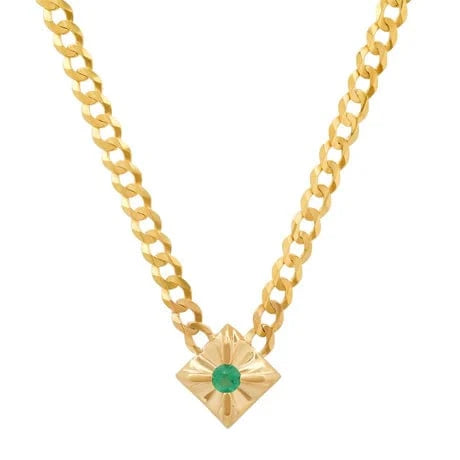 A timeless classic, the Carmela Necklace features a vibrant emerald centerpiece set in warm 14K yellow gold. Perfect for layering or wearing solo, this piece exudes elegance and versatility, making it a radiant addition to any jewelry collection.