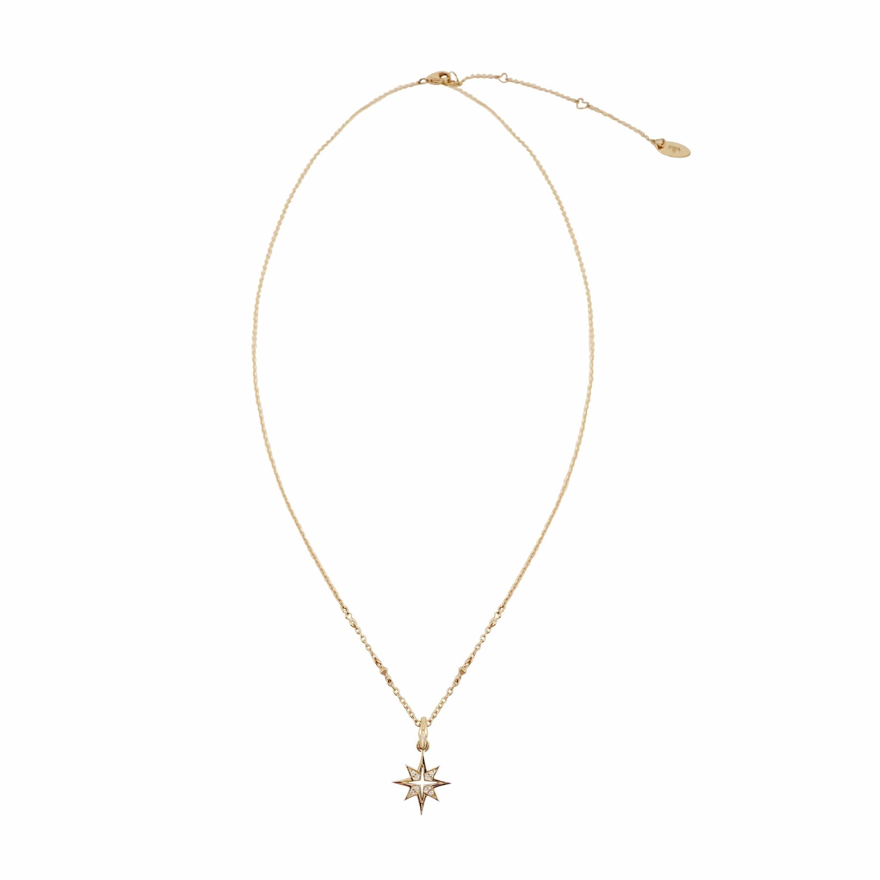 This delicate necklace features a 14k gold star pendant set with 0.02 carats of diamonds. The chain measures 15 to 18 inches, offering versatile length options. Its celestial design adds subtle elegance to any outfit. Perfect for moments when you want to shine with purpose.