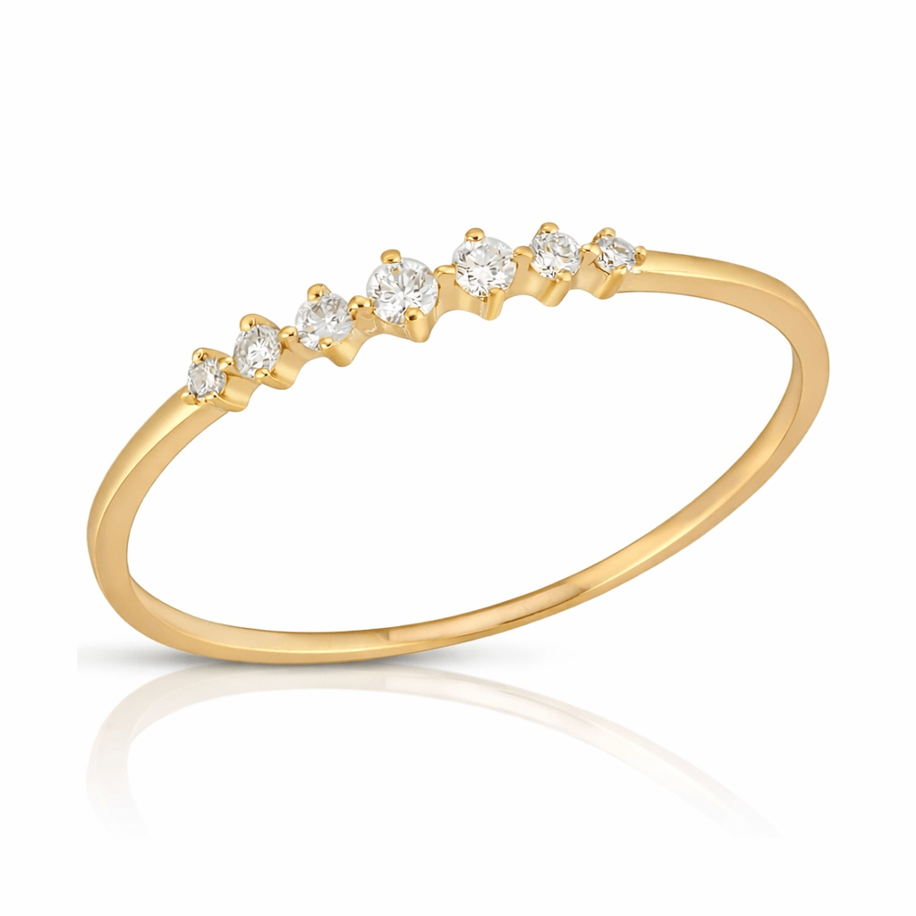 Graceful and timeless, the Seven Diamond Yellow Gold Stacking Ring is a delicate beauty, featuring seven sparkling diamonds in a graduated formation along a slim 14K gold band. The understated elegance of this design makes it a versatile essential, perfect for stacking or wearing solo.