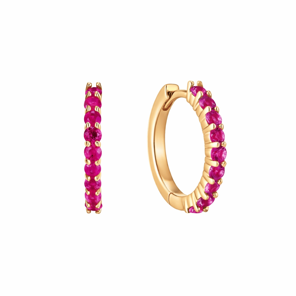 Ruby Pave Huggies 14K Yellow Gold