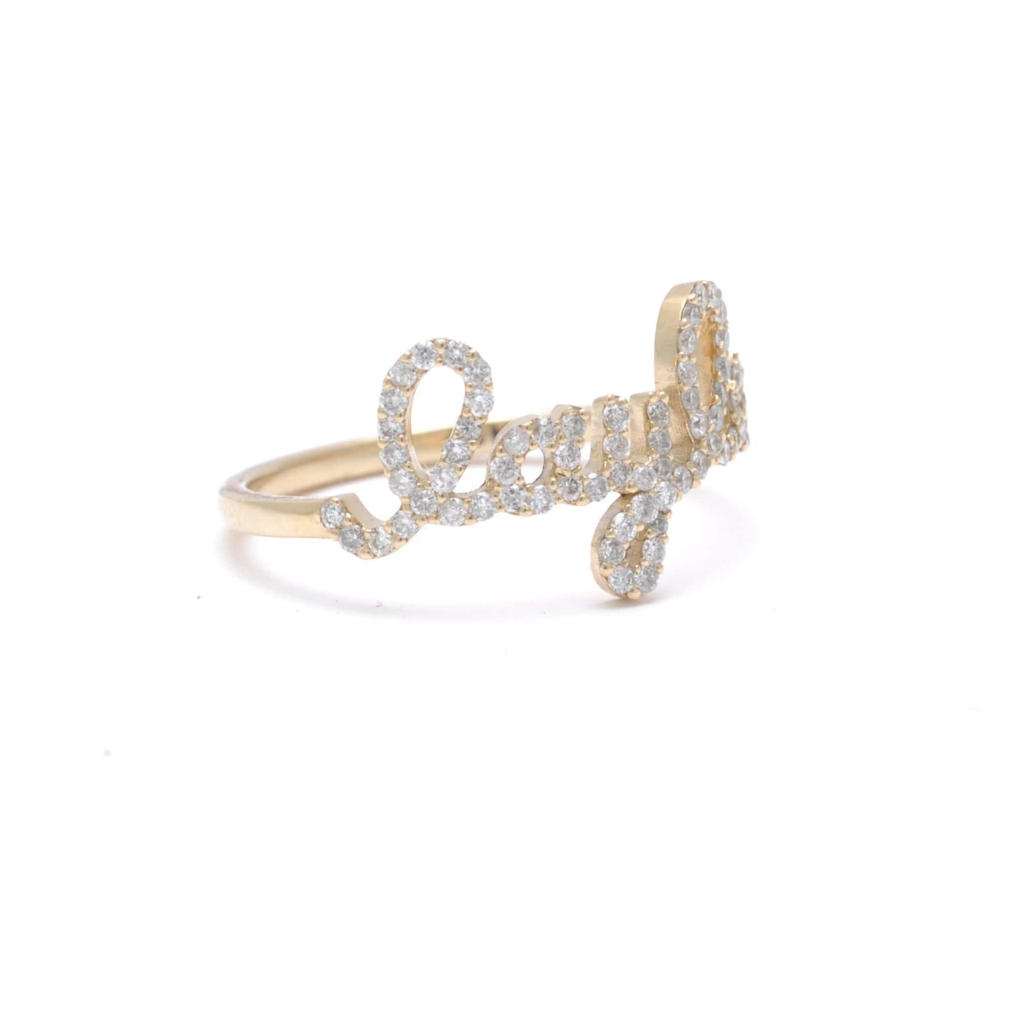 Customize your own diamond ring with any initial, name, or word you want! Available in multiple colors, number of letters, and fonts.